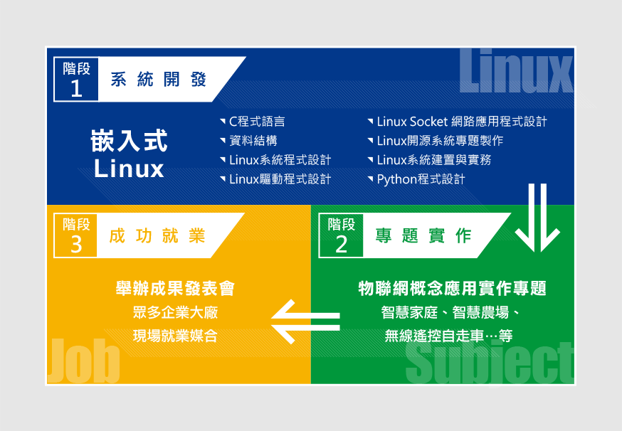 真正研發工作方式來培養學員解決問題的能力與RD人的工作態度以滿足業界對於即戰力人才需求