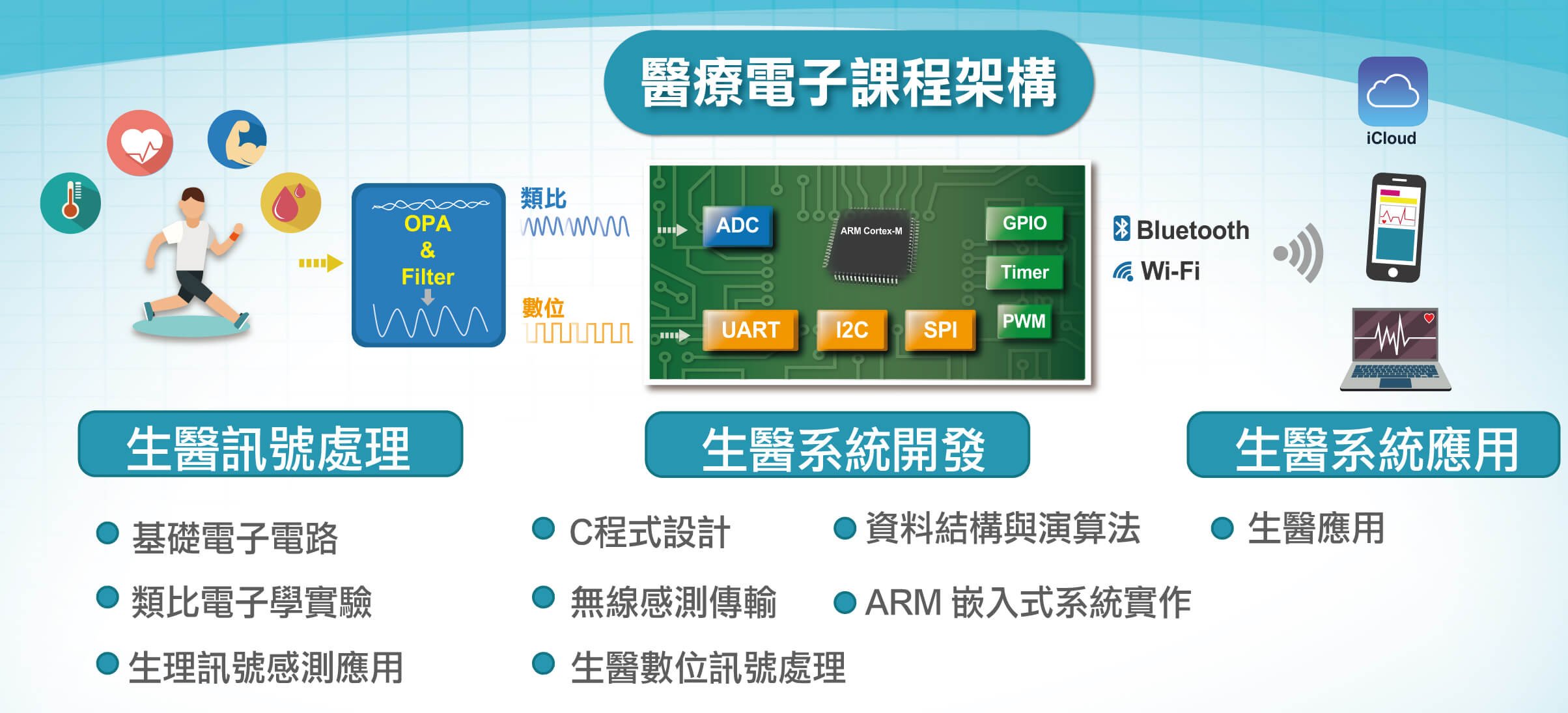 | 醫電班的就業方向 | 醫療電子韌體工程師、醫療器材工程師、醫療器材研發工程師、醫療產品測試工程師、醫療法規人員、電路設計工程師、韌體工程師/FW工程師、技術服務工程師、 系統開發人員、研發類資訊工程師、軟體工程師等 |