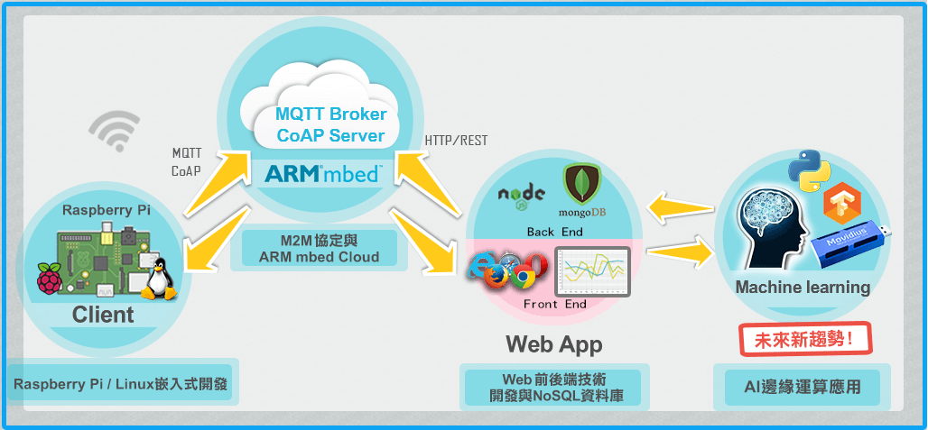●學會以Web後通訊-AJAX、 WebSocket等,在遠端即能透過Web介面來進行IoT資訊的掌握與控制