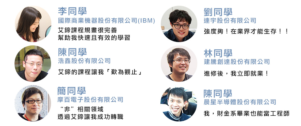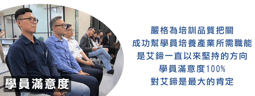 在這裡,我們看到了艾鍗成功培養學員培養逐夢的實力和勇氣! 唯有夠扎實的培訓,才能讓學員們飛更高、飛更遠! 當我需要人才的時候,艾鍗是我的求才首選! 因為親身見證,所以口碑推薦!