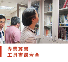 備有書籍櫃600本以上碩圖書及五家電子期刊雜誌 ,均可提供學員外借。