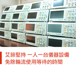 培訓中使用的儀器設備一人一台我們都準備好了!您不用再排隊輪流使用儀器包含:示波器、電源供應器、三用電表、訊號產生器…等設備。